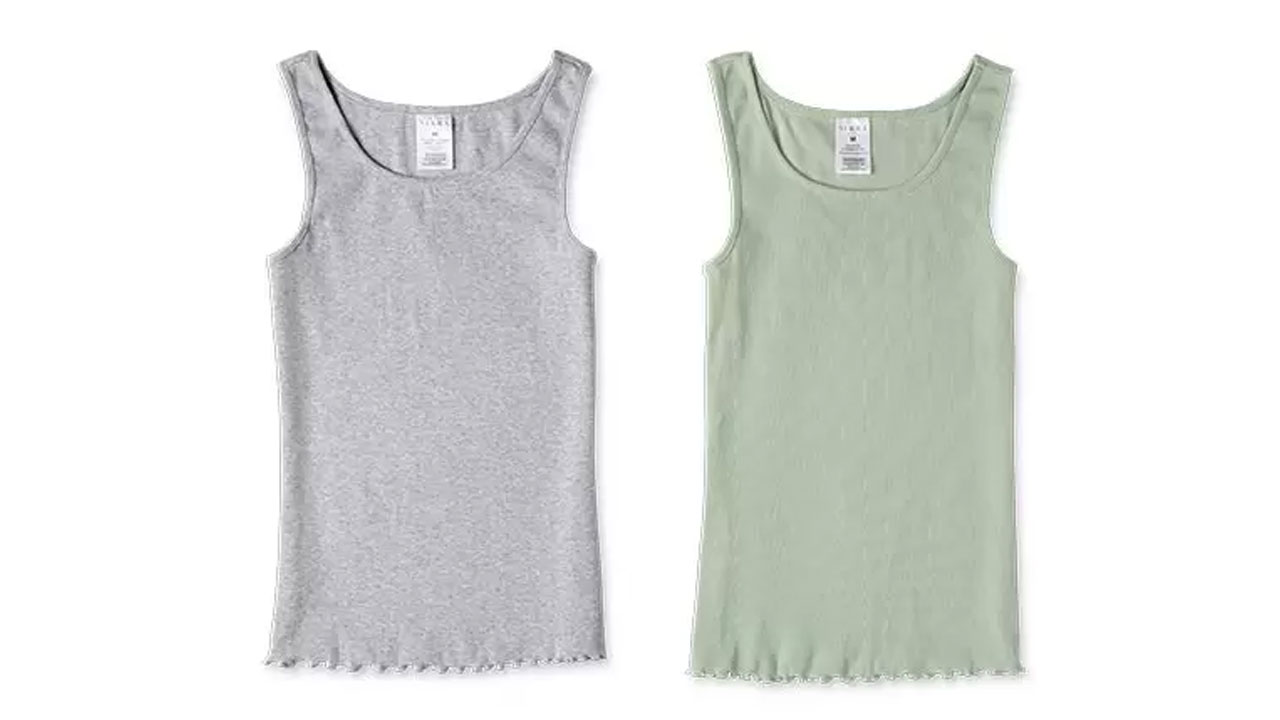 Every woman's spring wardrobe needs a good ribbed tank top or two. Luckily, you don't have to break the bank on quality clothes when you take advantage of the great deals at Aldi. This week, you can pick up a pair of ribbed tanks in a range of colors and styles. Whether you're looking for scoop necks or crewnecks, neutrals or eye-catching colors, there's an option for everyone—and each 2-pack is just $4.99, so you might as well get 'em all!