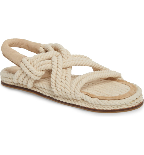 What exactly are rope sandals, you ask? Think Espadrilles–another summer footwear staple–mixed with strappy sandals. The sandals are made of, you guessed it, rope and wrap around your foot and ankle in a twisted fashion.
