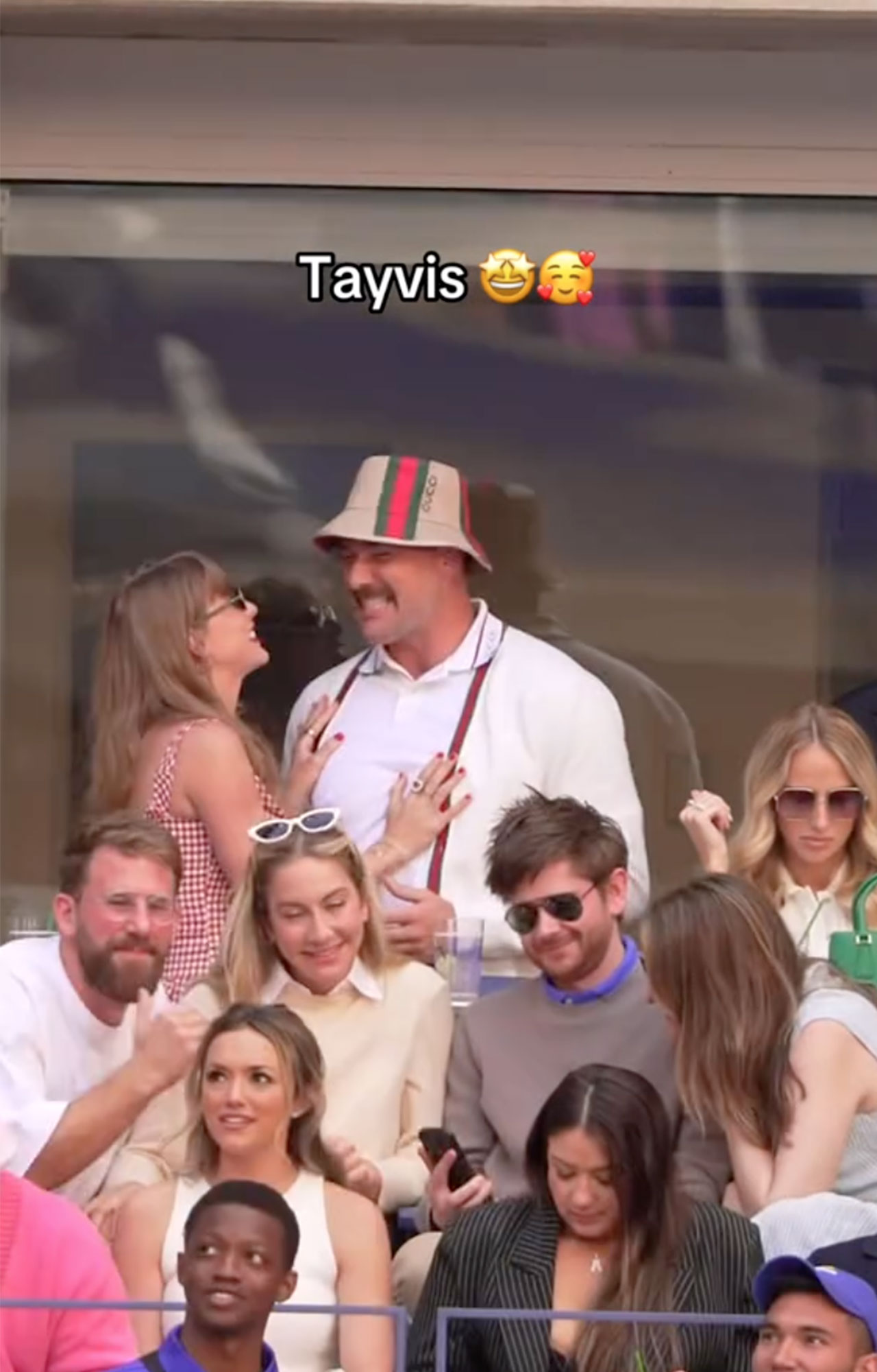 The 34-year-old “Anti-Hero” hitmaker, who was dressed in a cute ‘tomato check’ Reformation dress, and the 34-year-old Super Bowl champ were spotted having the time of their lives in their suite at Arthur Ashe Stadium, with a video posted by the official US Open TikTok account now going viral.