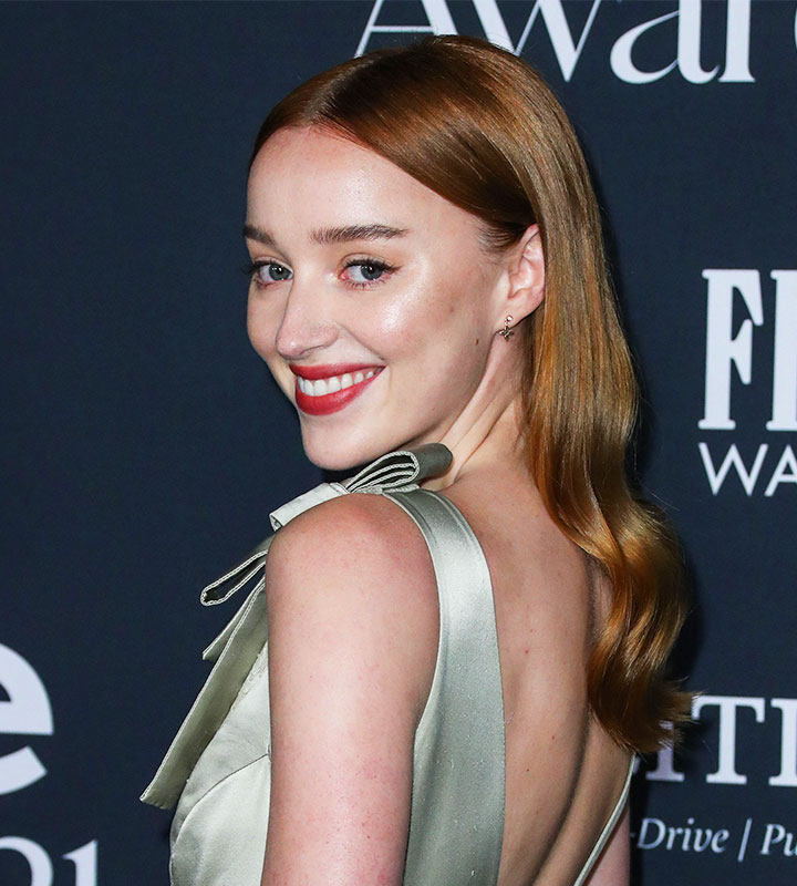 Copper is one of the trendiest hair colors for spring 2023, Mazzei explains, and it is versatile, as "every skin tone can wear red." Like here on Bridgerton star Phoebe Dynevor, reddish-brown tresses, Mazzei says, allows us to "enjoy the red trend without lightening our hair beyond brown and possibly causing damage." For warmer skin tones, he suggests a "red with orange undertones," as this is most complementary. For cooler skin, he recommends that "a red with blue undertones works well." Anyone with paler skin tones should "consider a lighter red or a strawberry blonde," he points out.