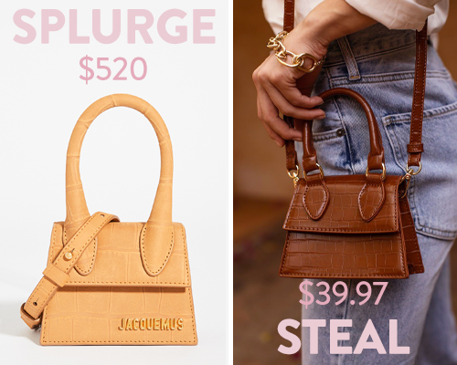 Wear this miniature brown crocodile-print crossbody with jeans and a white tee, or dress it up for work or drinks. Your friends will barely be able to tell it apart from the Jacquemus twin.