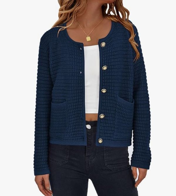 When the weather can’t make up its mind, a classic knit cardigan is the ultimate style solution. This one is soft, warm, and designed with thoughtful details like gold buttons and patch pockets. Amazon shoppers love its cozy, true-to-size fit, with one person sharing that the length hits just right at the waist. Now on sale for under $20, it’s a fall capsule wardrobe staple!