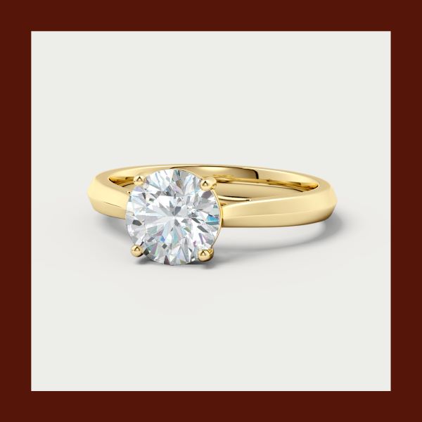 That’s certainly the case here—Angara’s round diamond solitaire is beautiful and then some! Secured in a six prong setting on a 14K yellow gold shank, this stunning ring is giving serious princess vibes.