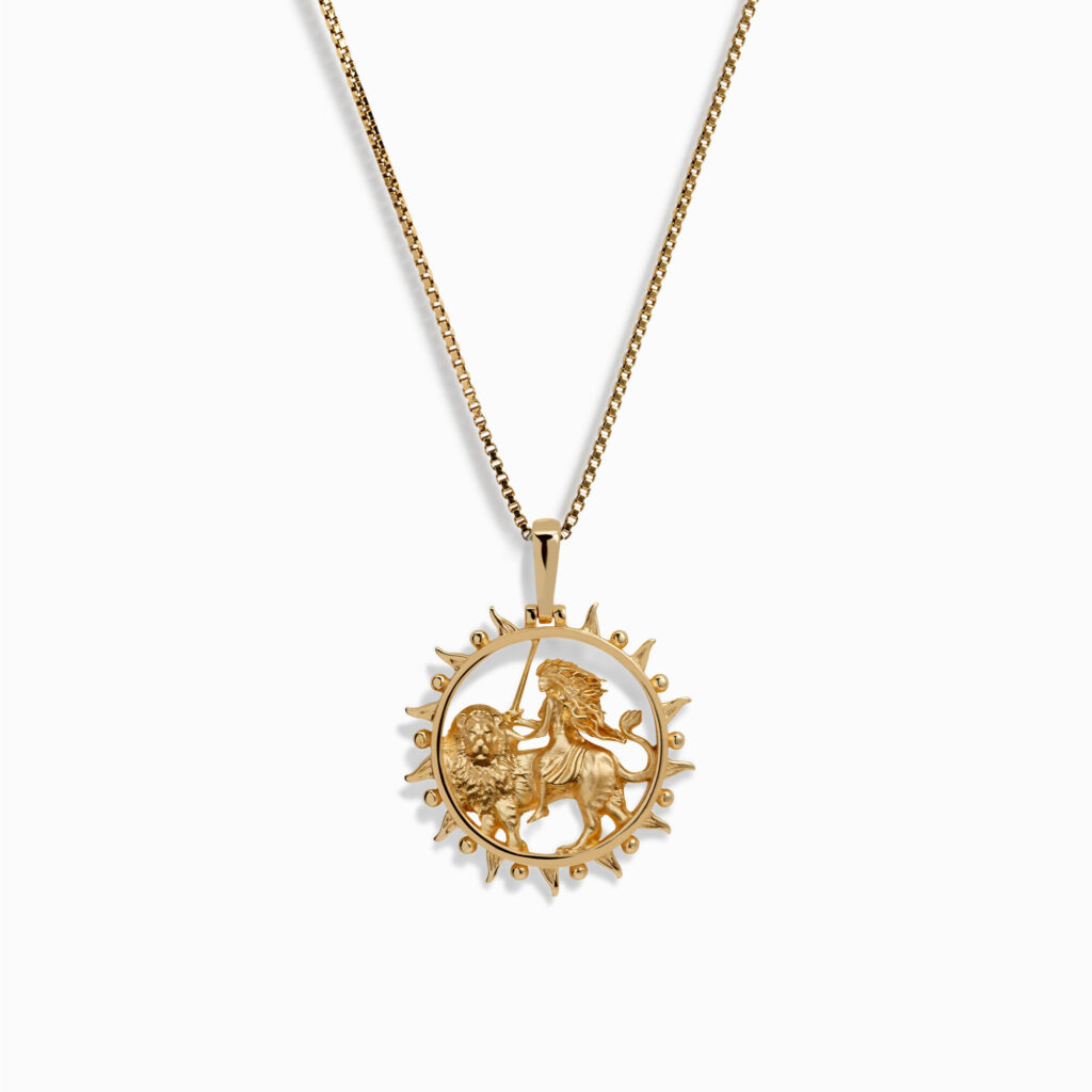 This gold vermeil pendant necklace features an Iranian warrior woman on a lion with a sword held aloft and her hair flowing like a mane. “Sheerzan” is Persian for Lioness and the overall inspiration behind this piece. It symbolizes female strength, particularly in Iran, where women have been fighting for their freedom with indefatigable courage. The necklace presents a woman who is a freedom fighter and exists in solidarity with all Iranian women fighting for their rights. This piece is available on the brand’s website while it lasts and can also be bought at their new flagship store now open in West Hollywood.