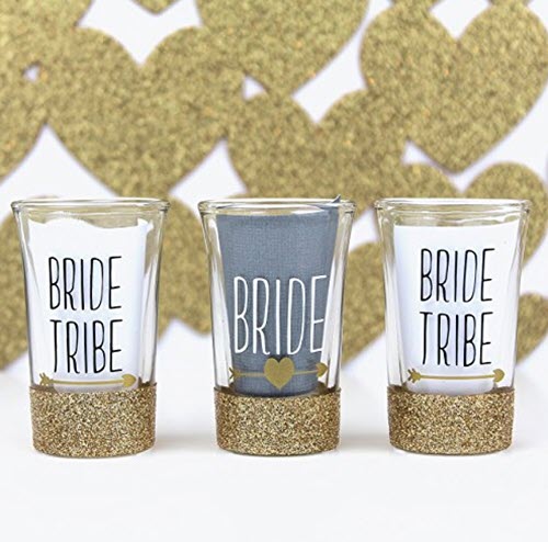 Bride Tribe Gold Glitter Bachelorette Party Shot Glasses ($5.95)