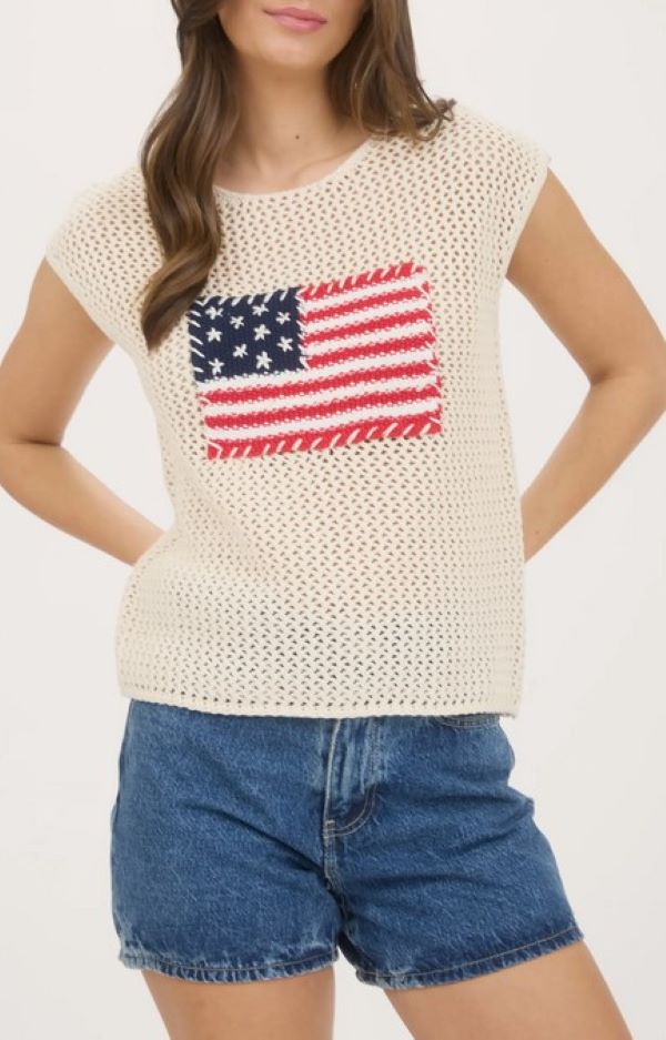 It’s patriotic, comfy, and easy to style with denim shorts…or those wide-leg pants you just added to cart.