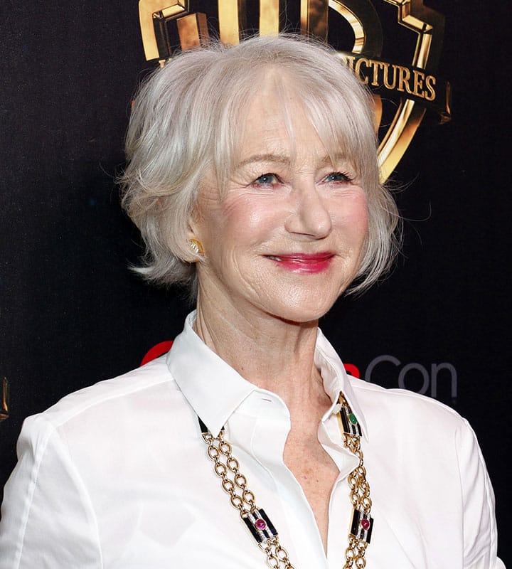 Helen Mirren always shines with her short, gray styles, and this one is hard to beat! With wispy, eyebrow-grazing fringe and soft waves, her bob has subtle and exquisite movement.