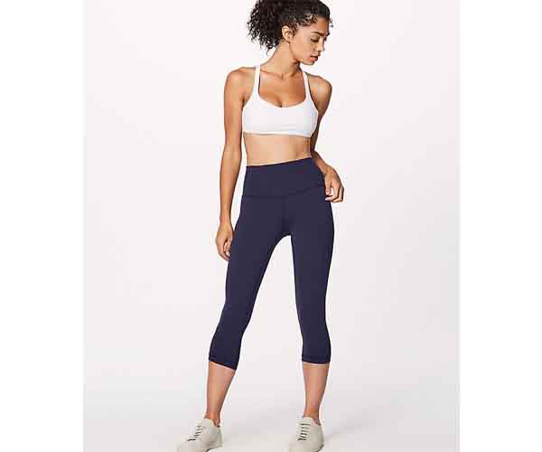 These lululemon yoga pants are the perfect pair of cropped leggings. They are made with Naked Sensation Nulu fabric that is soft, lightweight, sweat-wicking, and ultra stretchy. Colors come in Midnight Navy (pictured), Black, and Mach Blue.