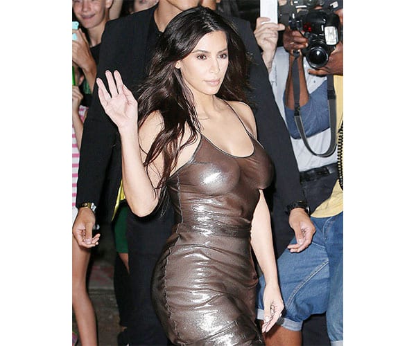 Kim Kardashian in a sheer bodysuit in New York City last year.