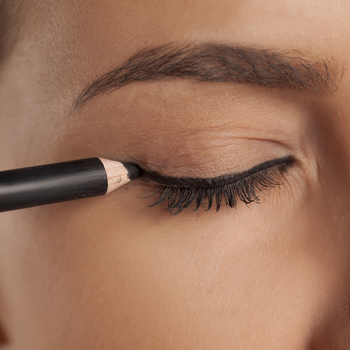 "Often, people will apply it in a very heavy fashion all the way around the eye, which can make the person look tired, and the eyes look heavy," she points out. Instead, she recommends "a light touch, and just the outer two thirds of the eye on top, and skipping eyeliner altogether on the bottom."