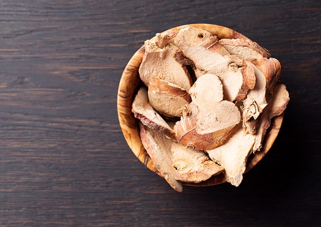 This root looks similar to ginger. However, it has uniquely powerful benefits. Dr. Maz Roginski, Doctor of Chinese Medicine & Acupuncture, Master Herbalist, Educator, and Podcaster, says galangal has been used for a long time to support digestion, energy, and overall vitality. “Galangal—Gao Liang Jiang—has been used in Chinese Medicine for thousands of years to ‘warm Cold,’ ‘move Qi,’ and ‘clear Damp,'” she explains, adding that these benefits can do wonders to ease inflammation, balance gut health, optimize metabolism, and support weight management.