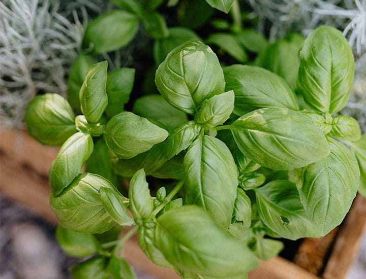Basil is an excellent nerve tonic. Given that colds can stress you out, basil (especially holy basil) helps fight fatigue and exhaustion. It is mind-brightening and supports the adrenals —all qualities necessary to recover from a cold or flu. Basil may be consumed as a hot or iced tea or added to whole foods. You can add fresh basil to a salad or sandwich, or even use it as a meal topper. Alternatively, you can also add basil to a pitcher of cold water with lemon as a whole body tonic. The best part? It's easy to grow in an indoor herb garden and have at your fingertips whenever needed.