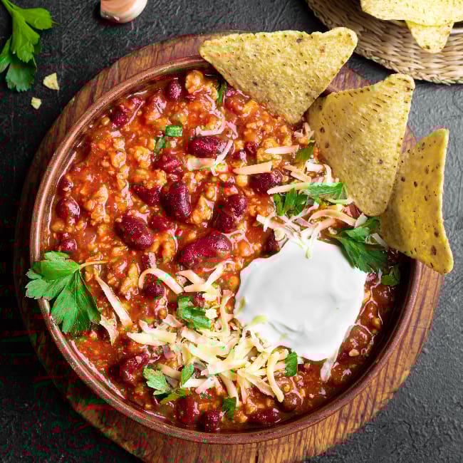 One of the best meals to enjoy as it gets colder out is chili, as it packs in a lot of flavor, spice, and super-filling ingredients. Chili is also an underrated weight loss food, as it’s full of high-fiber ingredients as well as high-protein ingredients, like beans, tomatoes, peppers, beef or turkey, and more.