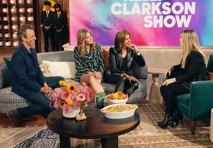 Arriving at the studio, Hager was clutching a sizable dish of queso which she had brought as a gesture of goodwill to her fellow Texan, Clarkson. "This is a true Texas girl though as this is a vat of queso!" Clarkson said excitedly, gushing over the food given to her. Kotb then praised Hager. "Jenna made it, it's her own personal recipe," she revealed.