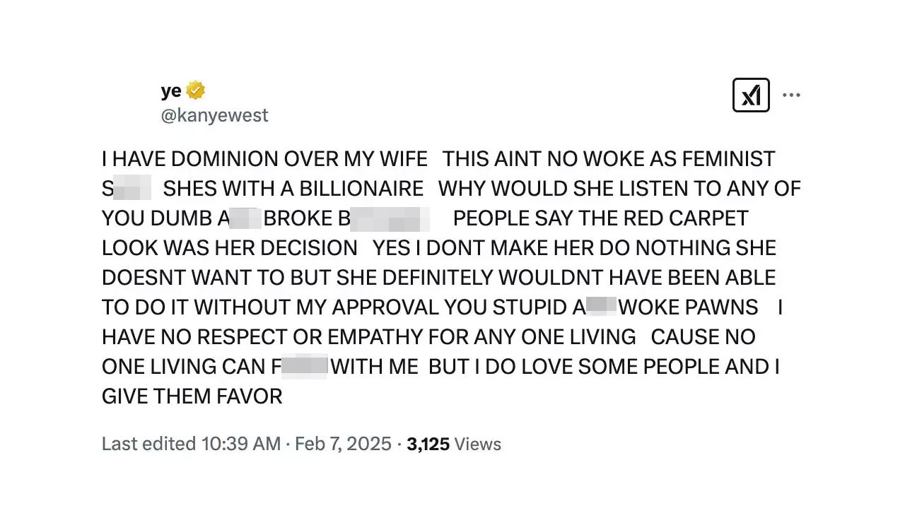 After receiving immense backlash, Kanye West seemingly had enough, and took to X to clap back. "I HAVE DOMINION OVER MY WIFE," he wrote in a tweet. "THIS AINT NO WOKE AS FEMINIST S***. SHES WITH A BILLIONAIRE. WHY WOULD SHE LISTEN TO ANY OF YOU DUMB ASS BROKE B*****S."