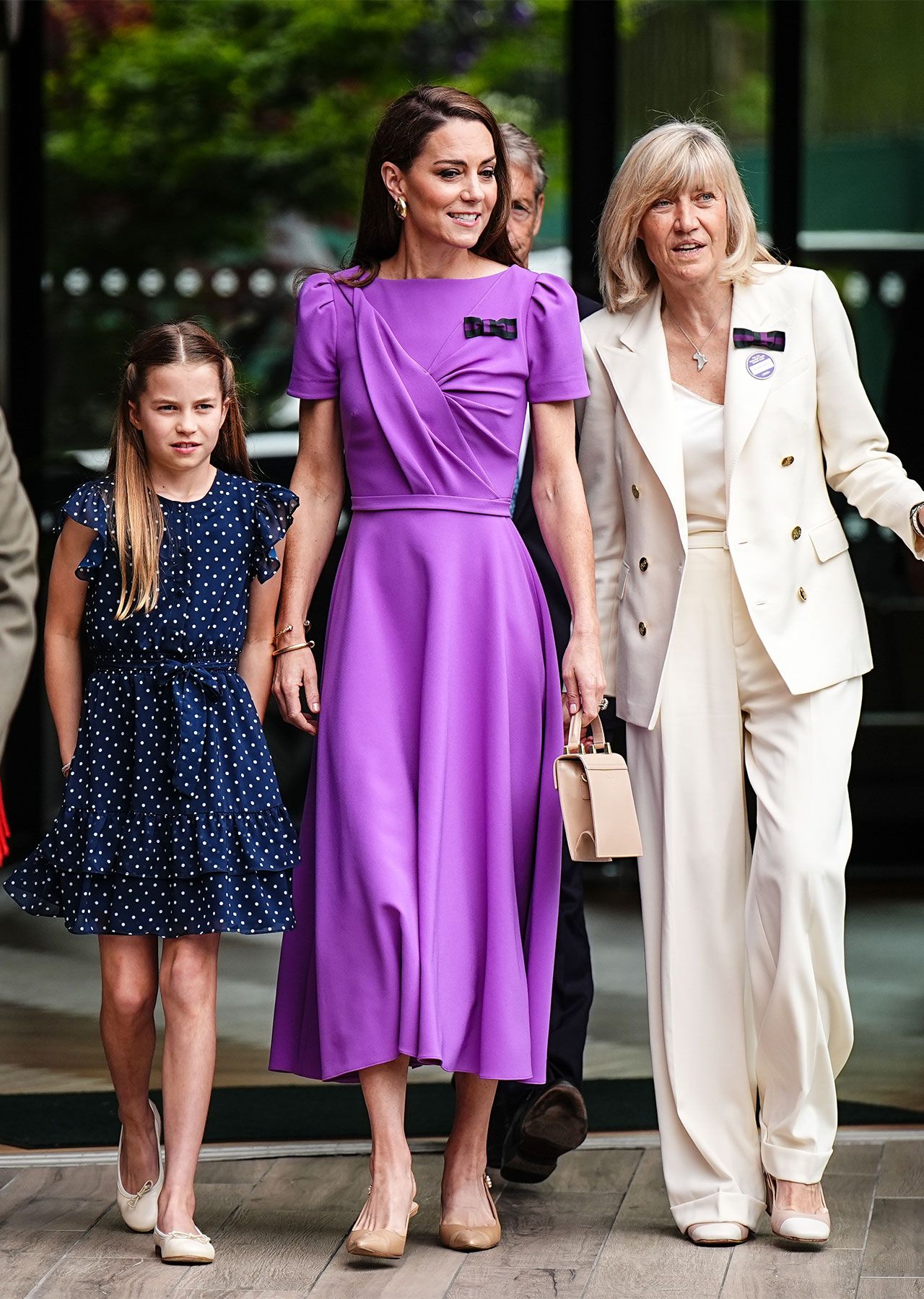 This comes after Kate previously wowed onlookers last month at Wimbeldon, when she captivated the crowd as she stepped onto Center Court for the Wimbledon Gentlemen’s Singles Final on July 14th. The style icon dazzled in a vibrant purple midi dress by Safiyaa, adorned with elegant short sleeves, delicate ruffle detailing around the chest, and a subtly waist-cinching belt, culminating in a graceful A-line skirt.