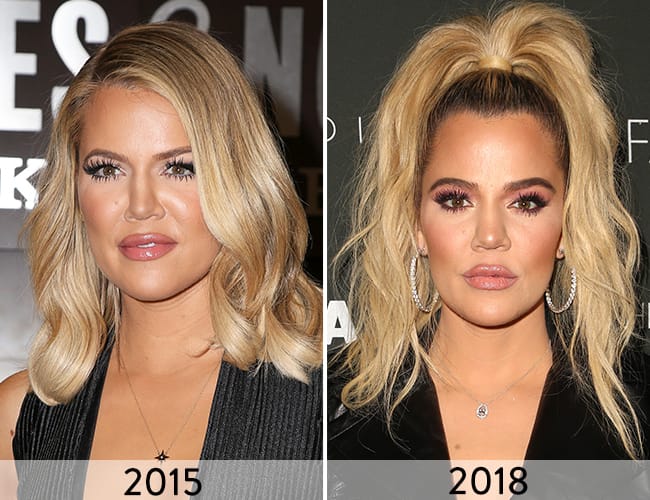 A lot changed for Khloé in these three years, and we don’t just mean her hair which got lighter and lighter over the years and eventually stayed at a very LA-ready blonde color. (We think Khloé suits all hair colors – even red when she briefly dabbled in that daring hue – but we have to admit that we are obsessed with her as a blonde!) Khloé's face really started to change back in 2015, which fans attributed to weight loss, and perhaps some cosmetic procedures.