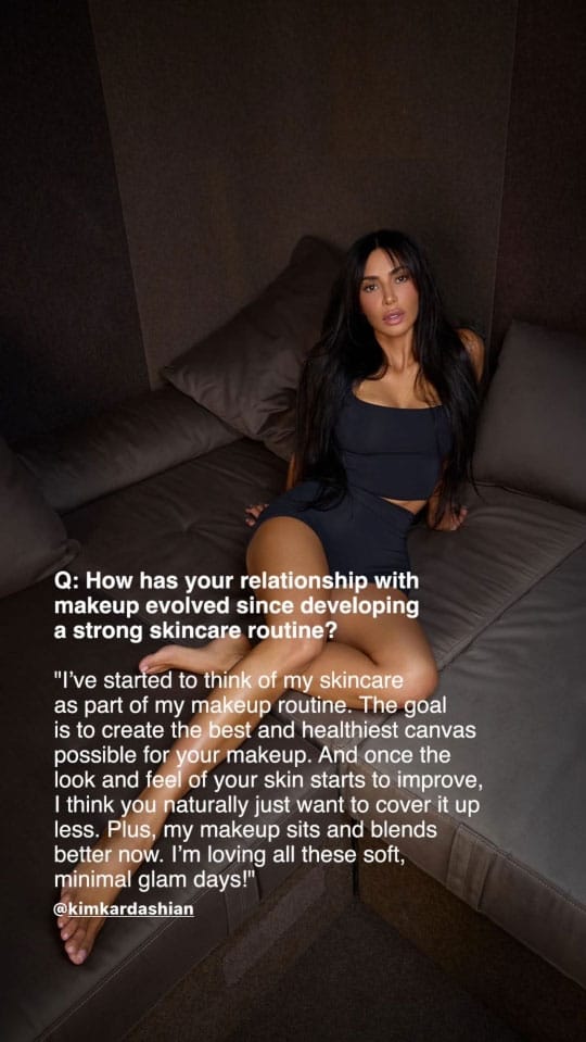 Her skincare line posted a series of Instagram stories about the Skkn founder’s skincare routine, but fans were less pleased with the alleged “barely-there” photos, which they called edited and fraudulent since Kim has allegedly had cosmetic work done and is known to use filters and heavy editing.