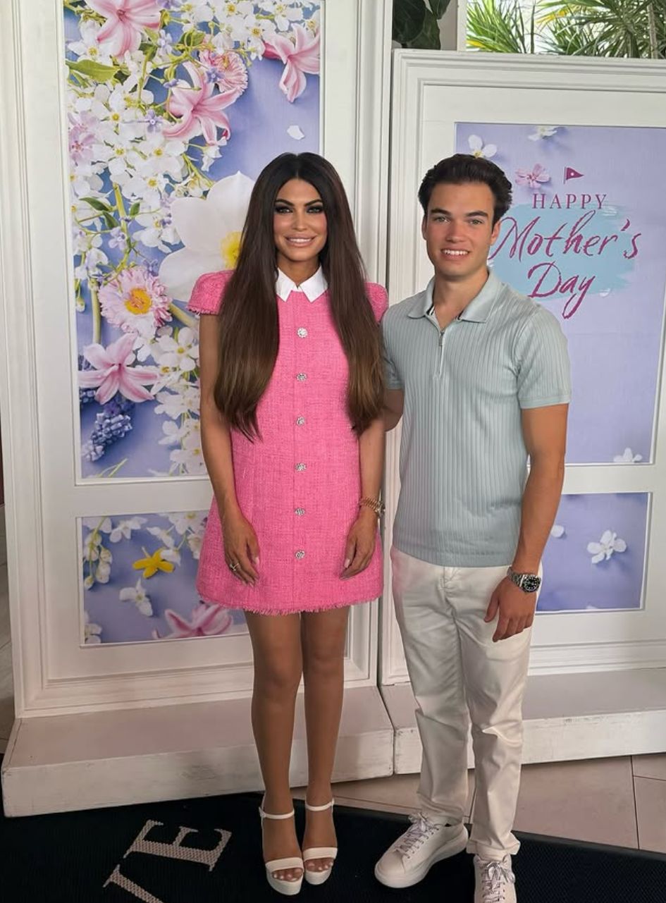 On Mother’s Day, she shared a sweet photo with her 18-year-old son, Ronan Anthony Villency, whom she shares with ex-husband Eric Villency. In the picture, Kimberly wore a pink tweed mini dress featuring a white collar and button-down front, paired with white heeled sandals.