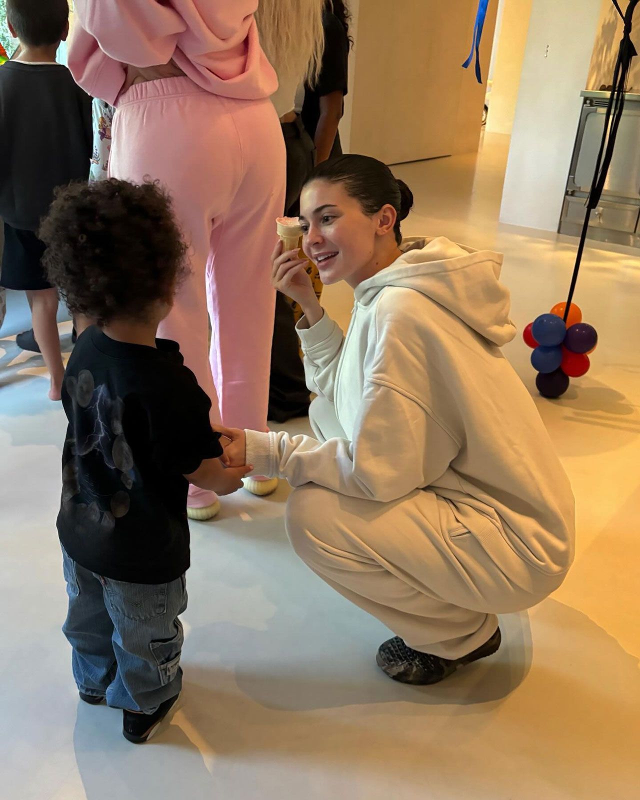 Kylie Jenner offered fans an uncommon peek at her seemingly unedited, bare face, revealing a significant reduction in her lip fillers. The 27-year-old Kardashians star uploaded a wholesome, au naturel photo on Instagram as part of a large August 28th photo collection post. In the image, the Kylie Cosmetics founder appeared radiant and supple with her raven tresses pulled back into a bun, as she knelt beside her two-year-old son, Aire behind the scenes of an event.