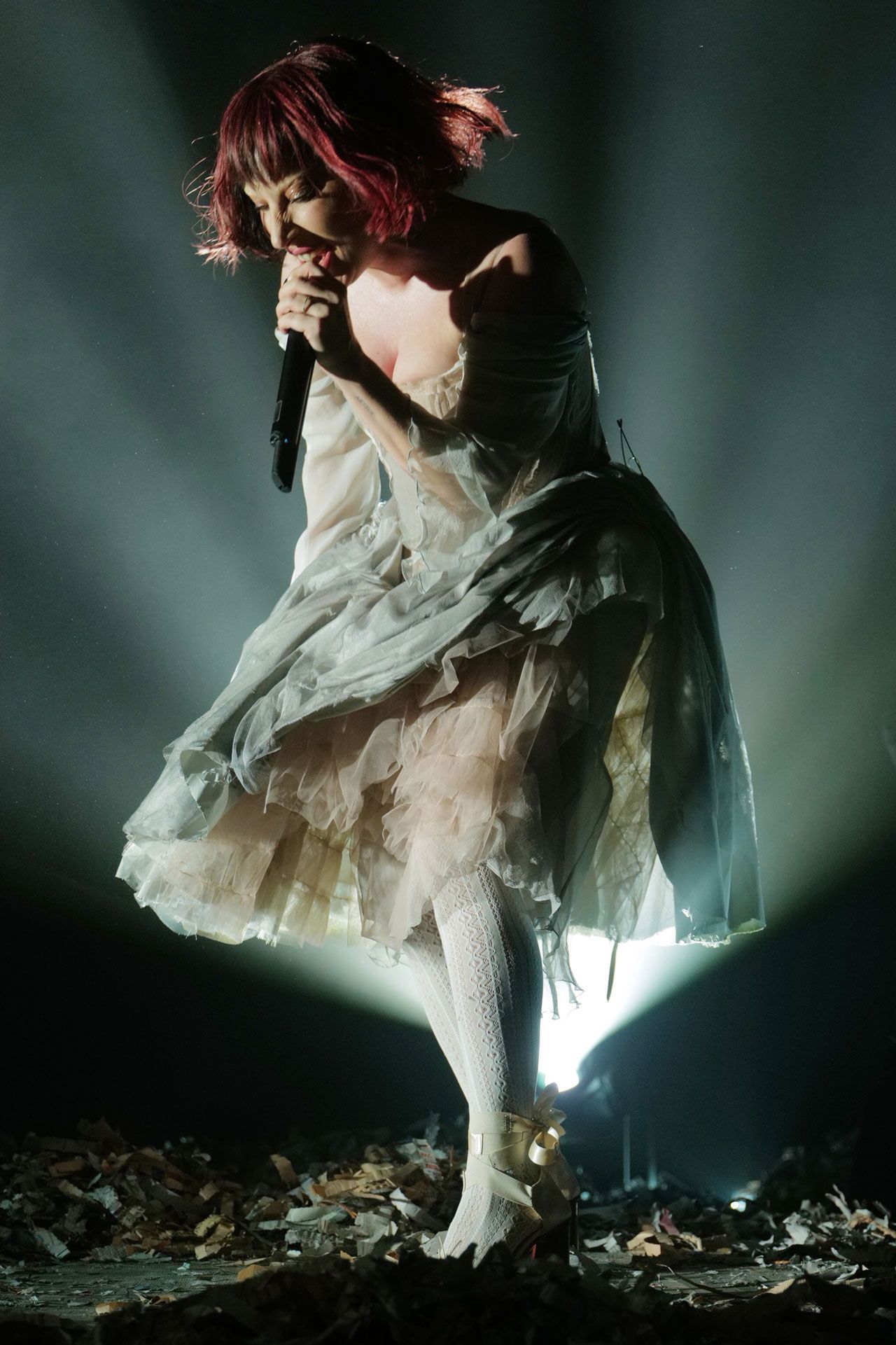 Gaga's soaring and powerful vocals enveloped the room, and she passionately sang while falling to her knees and dancing to help emphasize the heartrending lyrics.