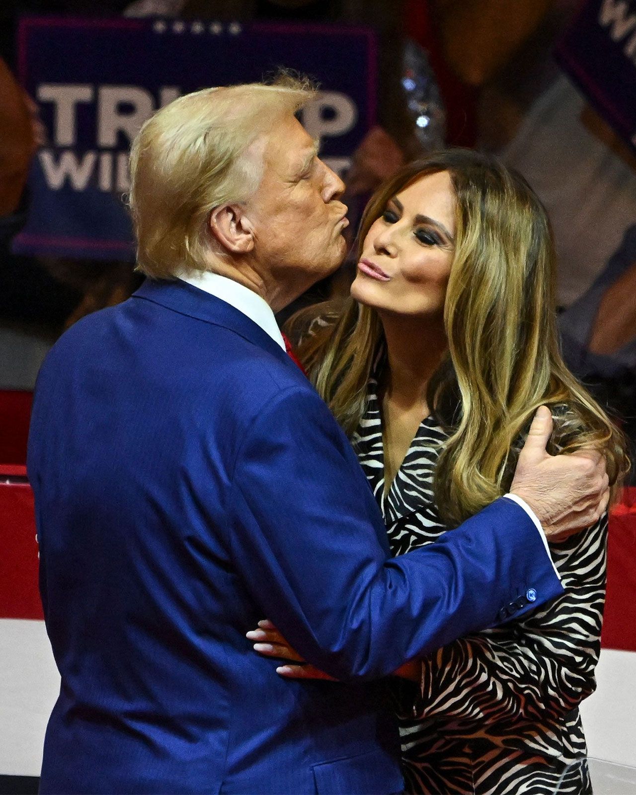 On X (f0rmerly Twitter), others agreed. One quipped that the former president is "still not allowed to kiss his wife on her lips." Over the weekend, Melania made this rare appearance on the campaign trail in New York City, greeting the crowd late into the evening in what she and Donald consider their "hometown."