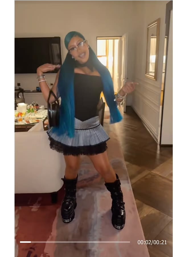 It wasn’t only the piercing that stirred backlash—North’s outfit also drew heavy criticism on social media. The 12-year-old, Kim and Kanye’s firstborn, was photographed leaving Pierluigi Restaurant in Rome alongside her mom, wearing a black-and-silver voluminous tutu-style mini skirt paired with a black corset-style top that gave the appearance of a push-up bra. She later flaunted the look again in a video on the joint TikTok account she shares with Kim. North added long blue hair to the outfit.