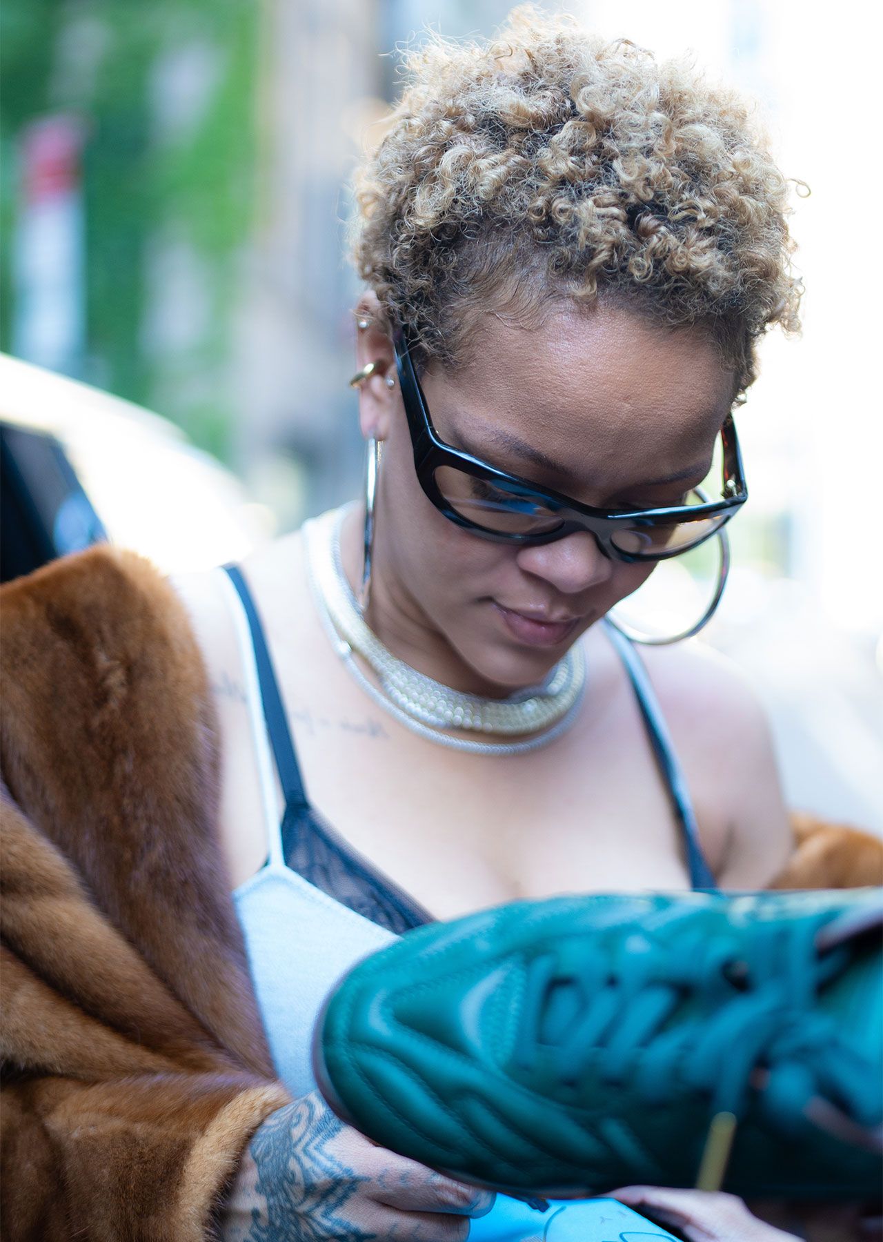 Rihanna Puts Her Natural Curly Hair Texture On Full Display While Rocking A Glamorous Fur Coat In NYC