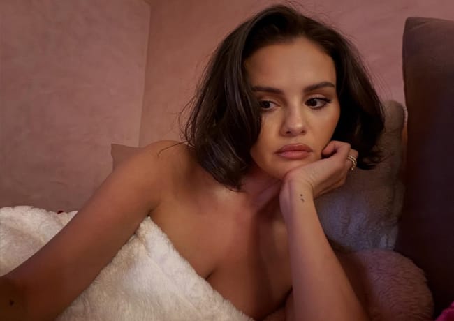 Last week, in a post with the caption "short series," Selena posed for her selfie camera at different angles, wearing a fuzzy white towel-robe hybrid, and flaunting both her glowing skin and swishy bob, with choppy bangs that went down to her eyebrows. She had on simple yet elegant makeup and flashed her large engagement ring and wedding band in the first photo.