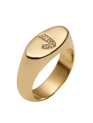 Jennifer Fisher Elongated Oval Signet Ring With Burnish White Diamond Letter ($1,800)