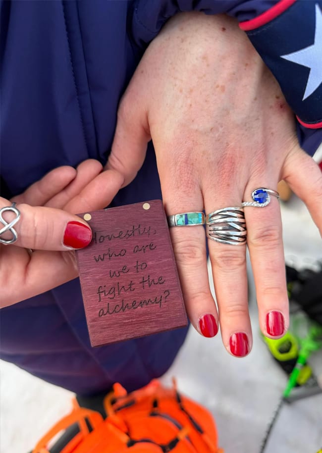"Honestly, who are we to fight the alchemy?" read the wooden ring box.