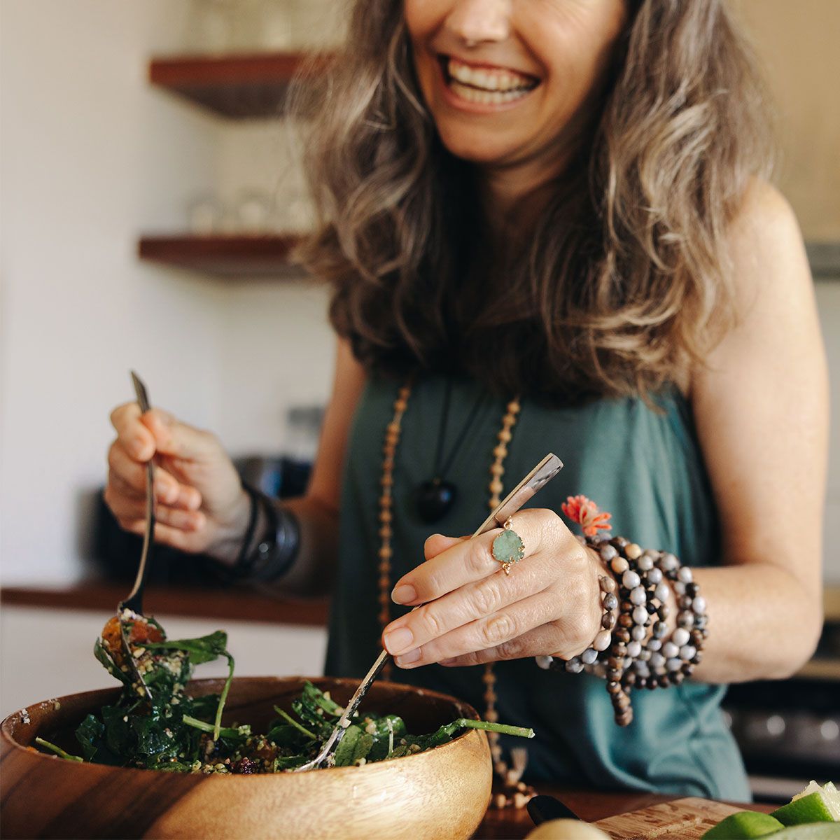 When it comes to food, Loucas explains that hair is made of proteins, so a diet balanced with protein can "help hair health." While he suggests "foods high in protein such as chicken, turkey, fish, dairy, eggs, legumes ( i.e. beans), and nuts," she also advises opting for essential fatty acids that contain omega-3 & 6 fatty acids. This includes "fish, pumpkin and flax seeds, walnuts, enriched breads and pastas."