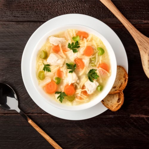 This warm and hearty soup is the perfect weekend meal to ease inflammation and treat your body. The turmeric and potato in this recipe have been shown to reduce bloating, and the chicken will provide you with ample protein to feel full and satisfied after your meal. Plus, it makes great leftovers!