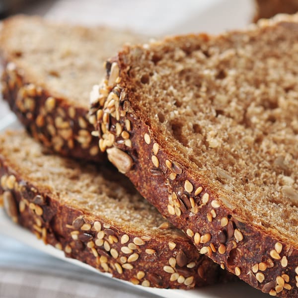 With that being said, ultra-processed breads and whole grain breads may be the same food technically, but nutritionally, they can’t even be compared. There are lots of breads on the market that offer high nutritional value, won’t prevent you from reaching your fitness goals, and don’t force you to sacrifice taste. Gaston says that there are a few ingredients she likes to see so that she knows a bread is high quality. “I look for a variety of different grains and seeds in the ingredients, like oats, barley, lentils, flax seeds, sunflower seeds,” she says, “These will provide added protein and fiber, plus great texture. This will keep you fuller for longer and provide great anti-inflammatory benefits.”