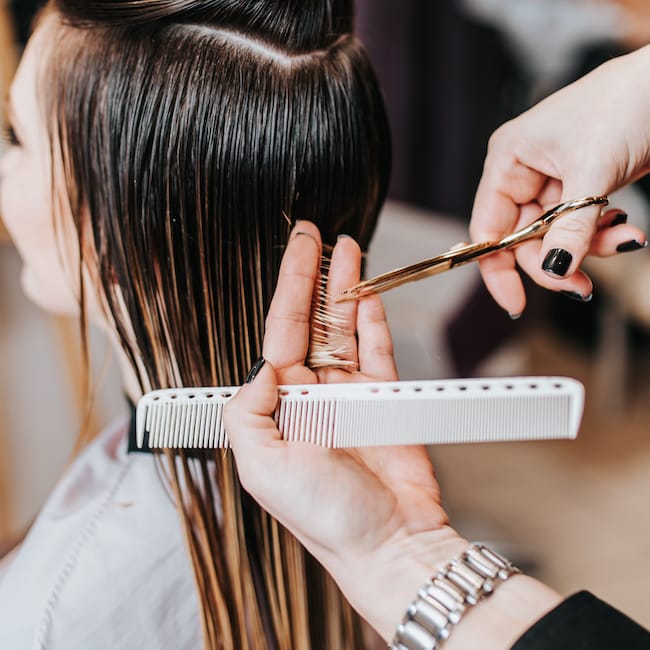 Just as important is how you care for your fine hair. First and foremost, Wells recommends using high quality hair products prescribed by your stylist. “Professional products use higher quality ingredients that are much more concentrated than the bargain or drug store brands, so you actually use less and spend about the same amount over time.” Many cheaper products also have ingredients that are incredibly damaging to fine hair—two of the most common are salt thickening agents and silicone, which can overtime cause your hair to feel lifeless and limp. You should also be careful with how much heat you use—fine hair is more sensitive to damage, and using hot tools can lead to breakage and changes in texture if they’re used too frequently. When you do use heat, be sure to always use a heat protectant.