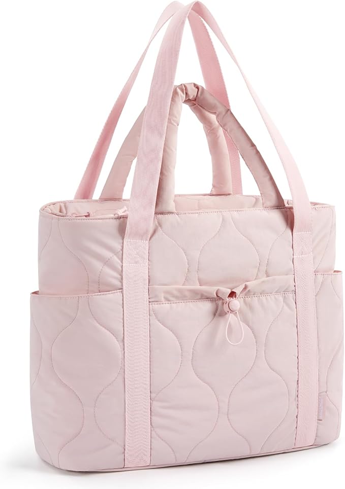 Commuters and travelers alike can benefit from this quilted tote bag that includes seven pockets that will allow you to organize all of your items. Its lightweight puffer material is resistant to wear and tear so you can bring this bag just about anywhere.
