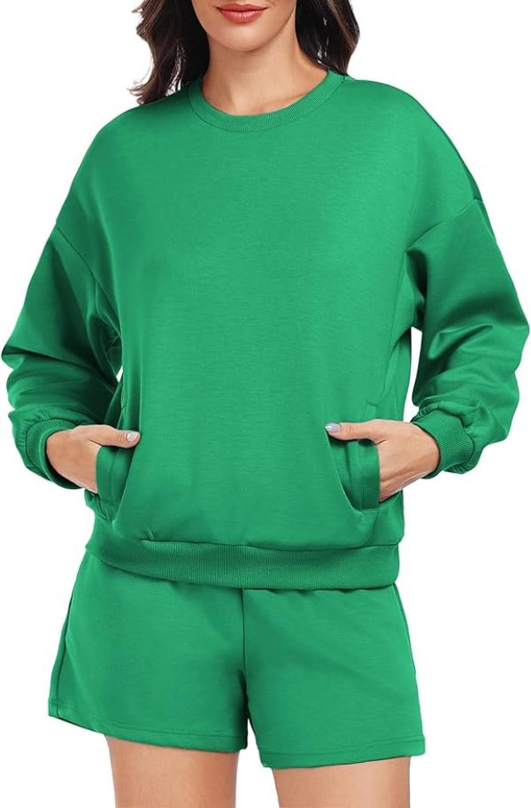 The long sleeved sweatshirt and elastic drawstring shorts can also be worn separately if matchy-matchy ‘fits aren’t your thing.