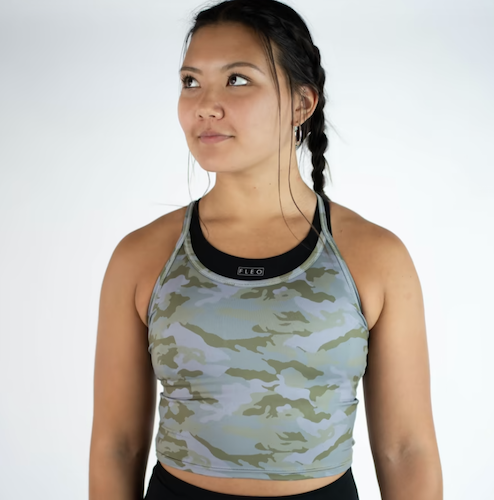 For ladies who like a little bit of femininity in their camo, this top is the way to go. Lavender gives a softer look to traditional camo dark greens. Wear the racerback crop when you want to show off your curves but need a little more coverage than a sports bra.