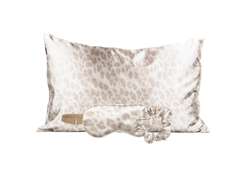 This satin sleep set is ideal for your beauty sleep. Satin and silk have been proven to reduce damage on your skin and hair while you sleep. Plus, it makes you feel like a princess! This set comes with a satin pillowcase, satin eye mask, and a satin scrunchie to protect those luscious locks.