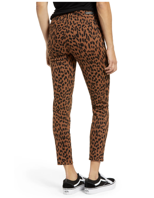 Nordstrom’s weekend clearance sale has us dead: you get an extra 25% off clearance items! So, naturally, we’ve been combing through the sale items to find our favorite deals… and this fun pair of leopard print skinny jeans is one of them.