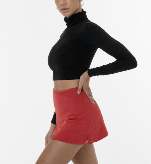 Skorts are making a comeback, baby! Starting with this one. With form-fitting shorts underneath, this skort provides you maximum movement and minimal restriction. It’s got a mid to high waist and a tiny waistband, and it’s made of LA Apparel’s premium heavyweight cotton spandex blend. Available in bright colors like this red, as well as classic neutrals.