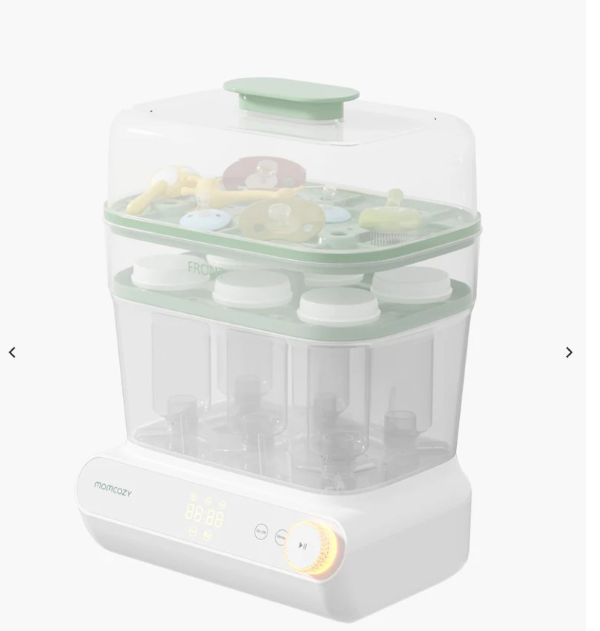 Another important thing as a new mom is keeping everything clean. Obviously, you don’t want your baby sucking on anything that isn’t sterile, but when I was in the thick of newborn life, we didn’t have a sterilizer. I was hand-washing bottles, breast pump parts, and pacifiers around the clock, and that time really adds up. Looking back, I wish I’d had Momcozy’s 3 Layers Fast Bottle Sterilizer and Dryer ($119.99).