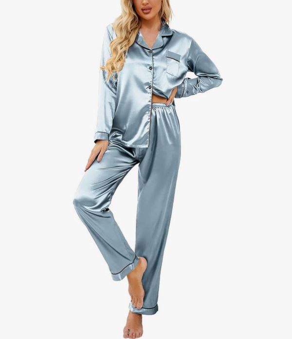 Ekouaer Women’s Classic Button Down Long Satin Silk Pajama Set ($26.99)