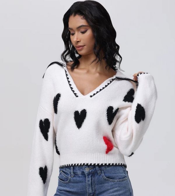 Ahoy there, sailor—that’s one of the cutest pullovers I ever did see! A sweater of this size is great for layering, though it’ll work great on its own once the weather shifts towards spring. I love how the fun and flirty heart design gets a nautical refresh, courtesy of the sailor-inspired neckline and contrast stitching.