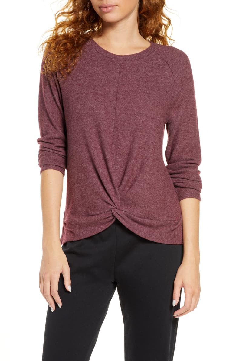 Socialite Twist Front Brushed Hacci Sweatshirt ($20.98, down from $35)